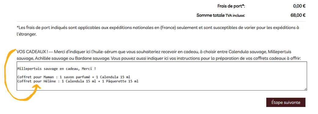 Notez précisément le prénom de la personne et le contenu du coffret.